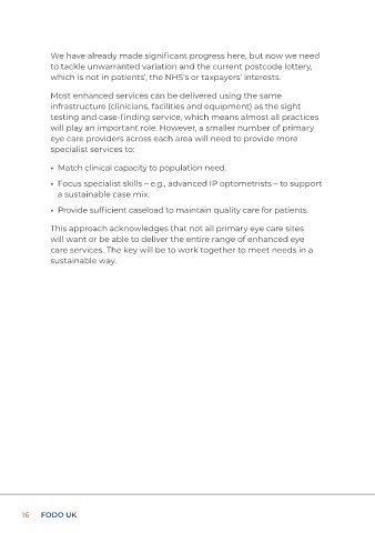 • Focus specialist skills – e.g., advanced IP optometrists – to support